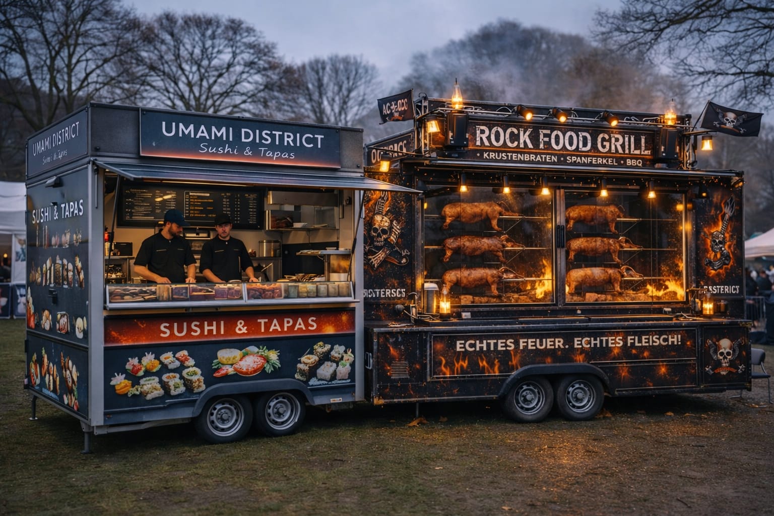Mit unseren professionellen Foodtrailern bringen wir echtes Festival-Feeling direkt zu Ihrem Event. Egal ob Firmenfeier, Hochzeit oder Festival – wir liefern Genuss, Show und Erlebnis.